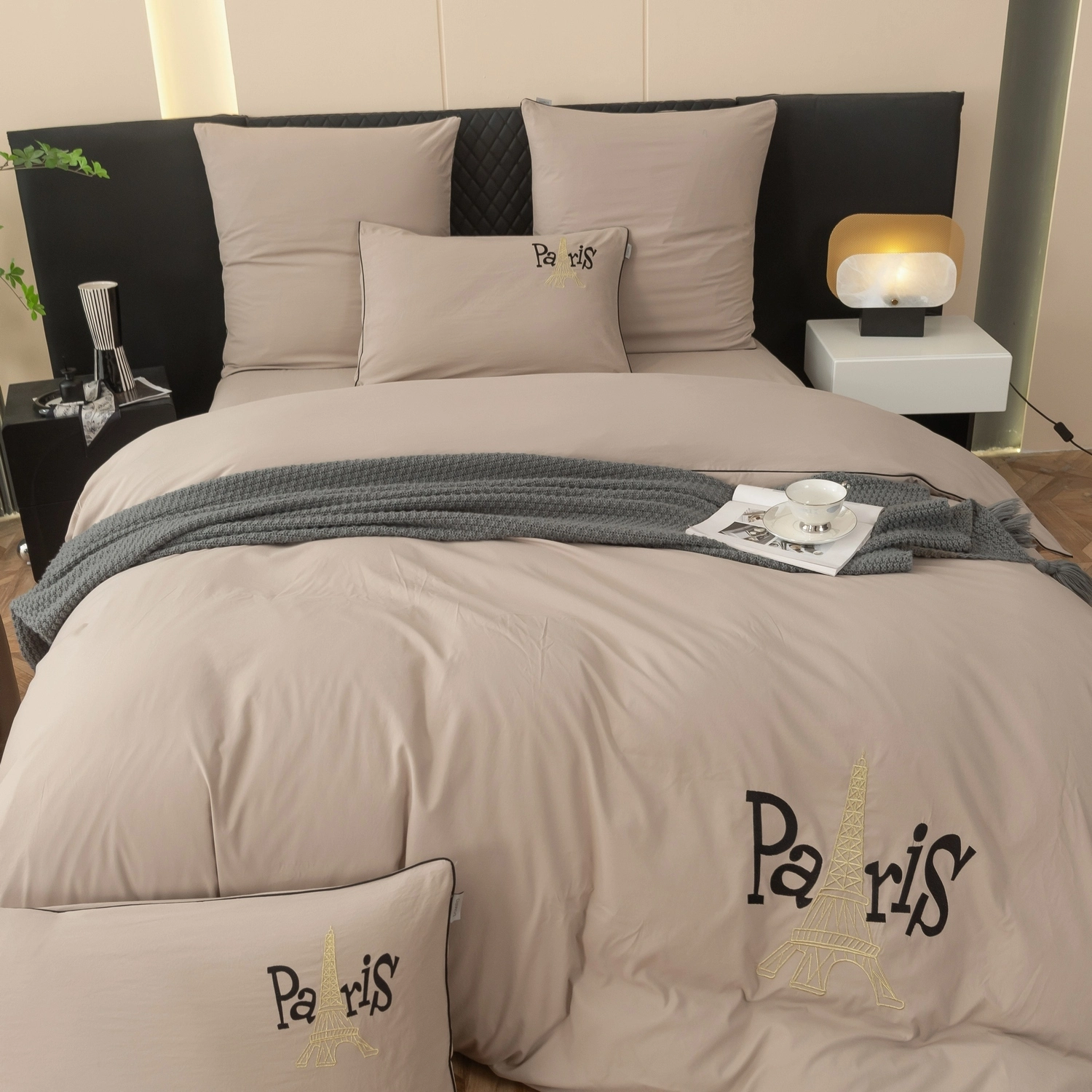 Пододеяльник и наволочки: Украшены вышивкой и кантом по периметру