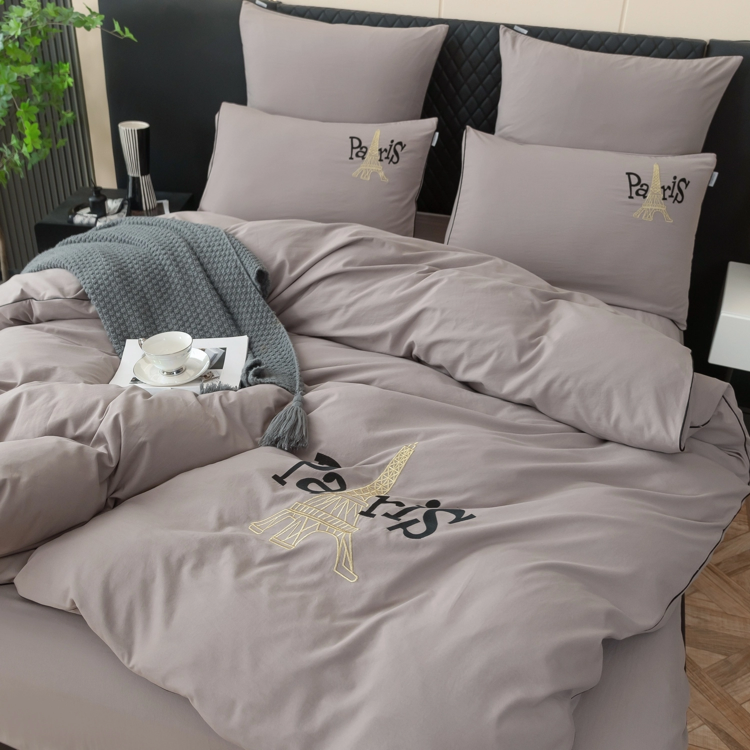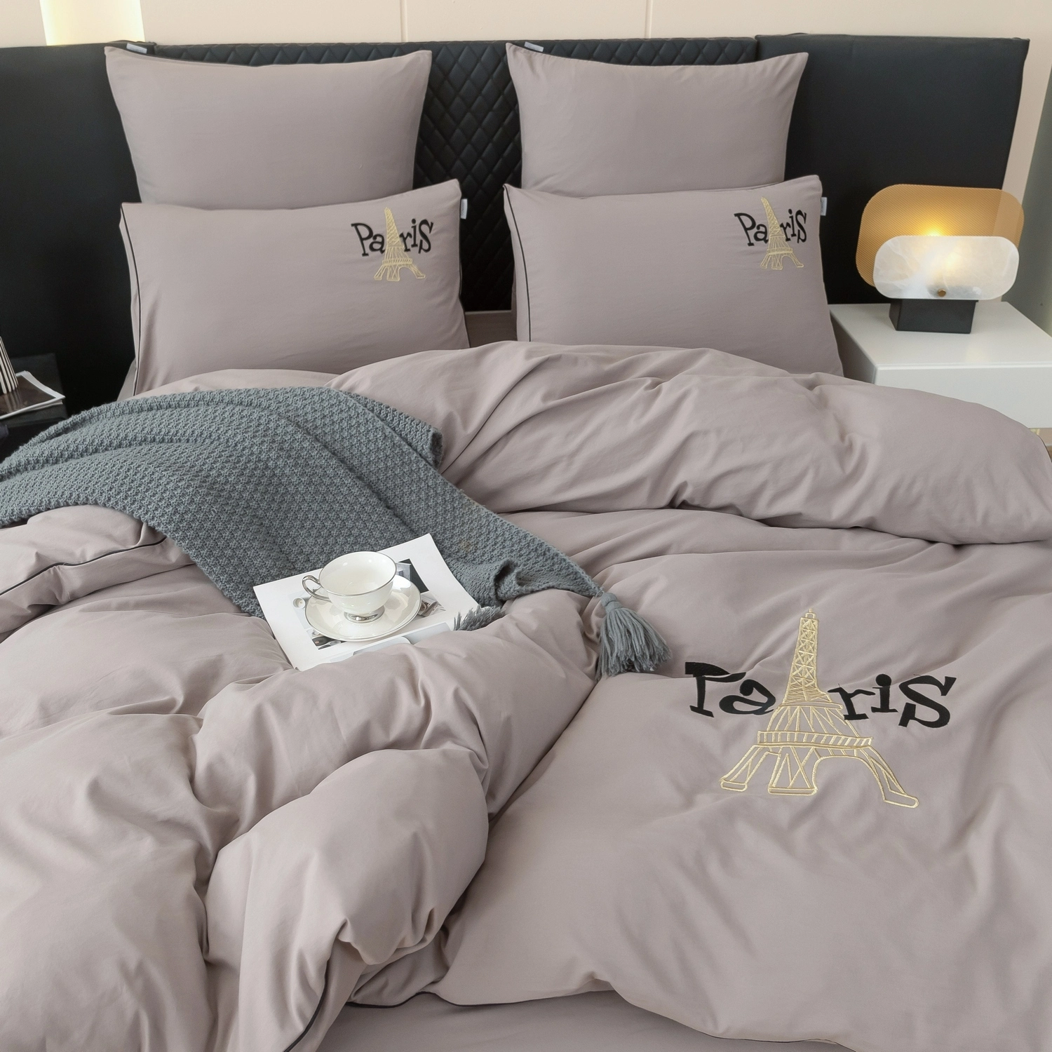 Пододеяльник и наволочки: Украшены вышивкой и кантом по периметру