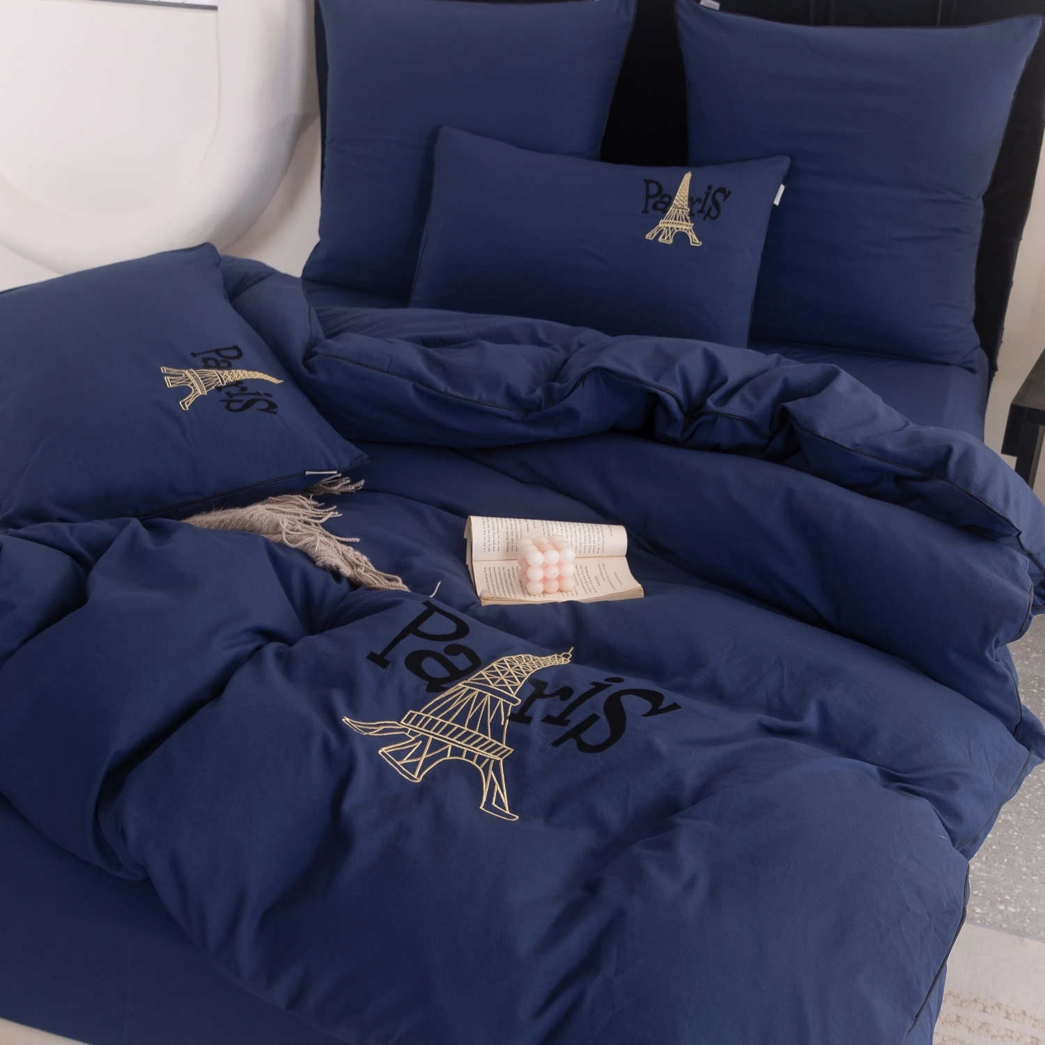 Пододеяльник и наволочки: Украшены вышивкой и кантом по периметру