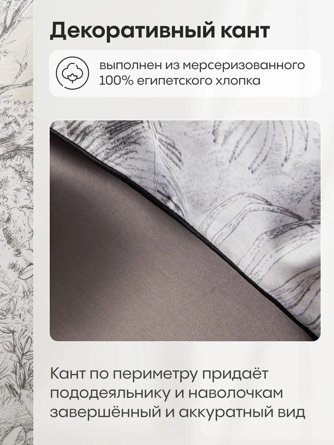 Пододеяльник и наволочки: Украшены кантом по периметру