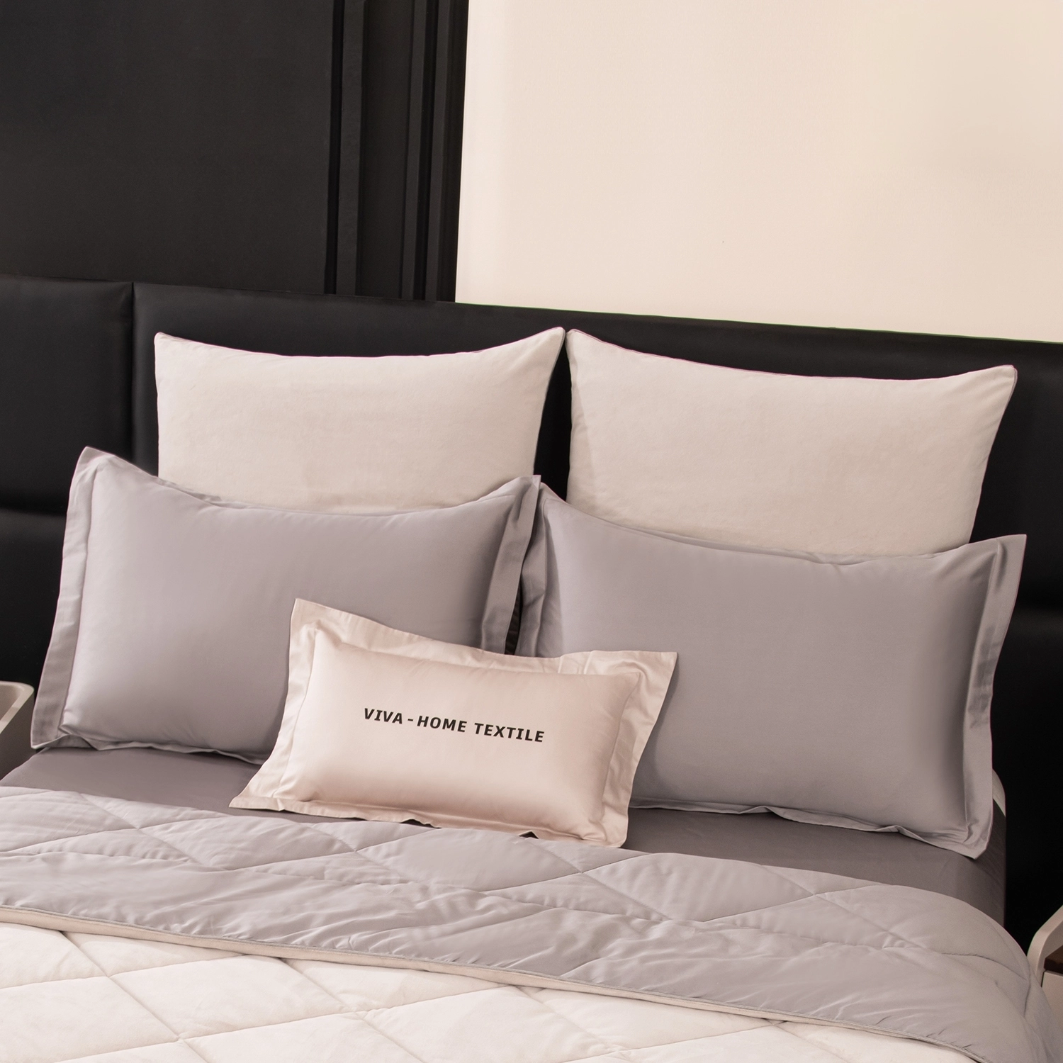 В комплект входят четыре наволочки: 50x70 см (2 шт) с запАхом (кармашком), выполненные из сатина 100% египетского хлопка, с ушками и широким кантом по периметру; 70x70 см (2 шт) на молнии - верх из мягкого велюра, низ из сатина 100% египетского хлопка, оформлены бархатным кантом.