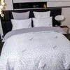 Ткань компаньон: Верх пододеяльника - мерсеризованный сатин, низ пододеяльника - сатин. Наволочки 50*70 см и 70*70 см с разных сторон разной расцветки. Пододеяльник с разных сторон разного цвета. Простыня однотонная такого же цвета, как низ пододеяльника.