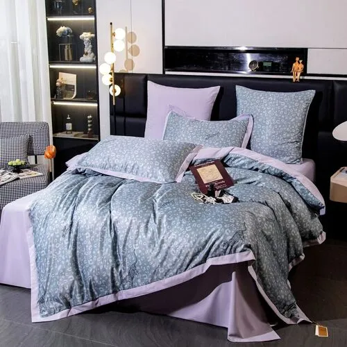 Ткань компаньон: Верх пододеяльника - мерсеризованный сатин, низ пододеяльника - сатин. Наволочки 50*70 см и 70*70 см с разных сторон разной расцветки. Пододеяльник с разных сторон разного цвета. Простыня однотонная такого же цвета, как низ пододеяльника.