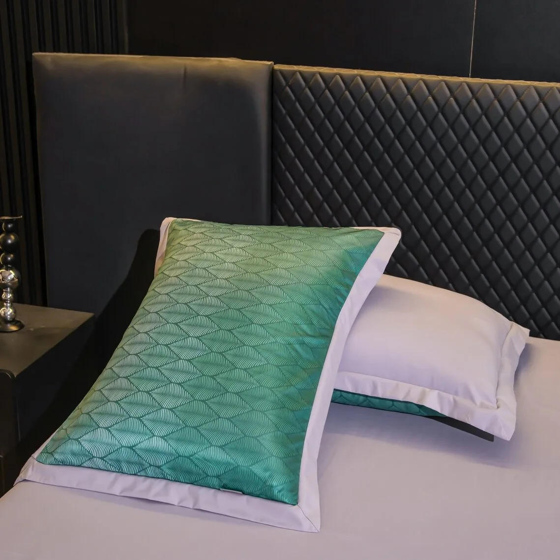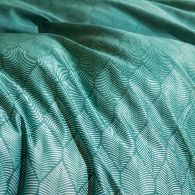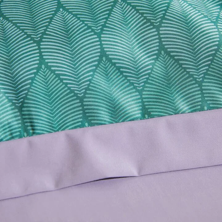 Ткань компаньон: Верх пододеяльника - мерсеризованный сатин, низ пододеяльника - сатин. Наволочки 50*70 см и 70*70 см с разных сторон разной расцветки. Пододеяльник с разных сторон разного цвета. Простыня однотонная такого же цвета, как низ пододеяльника.