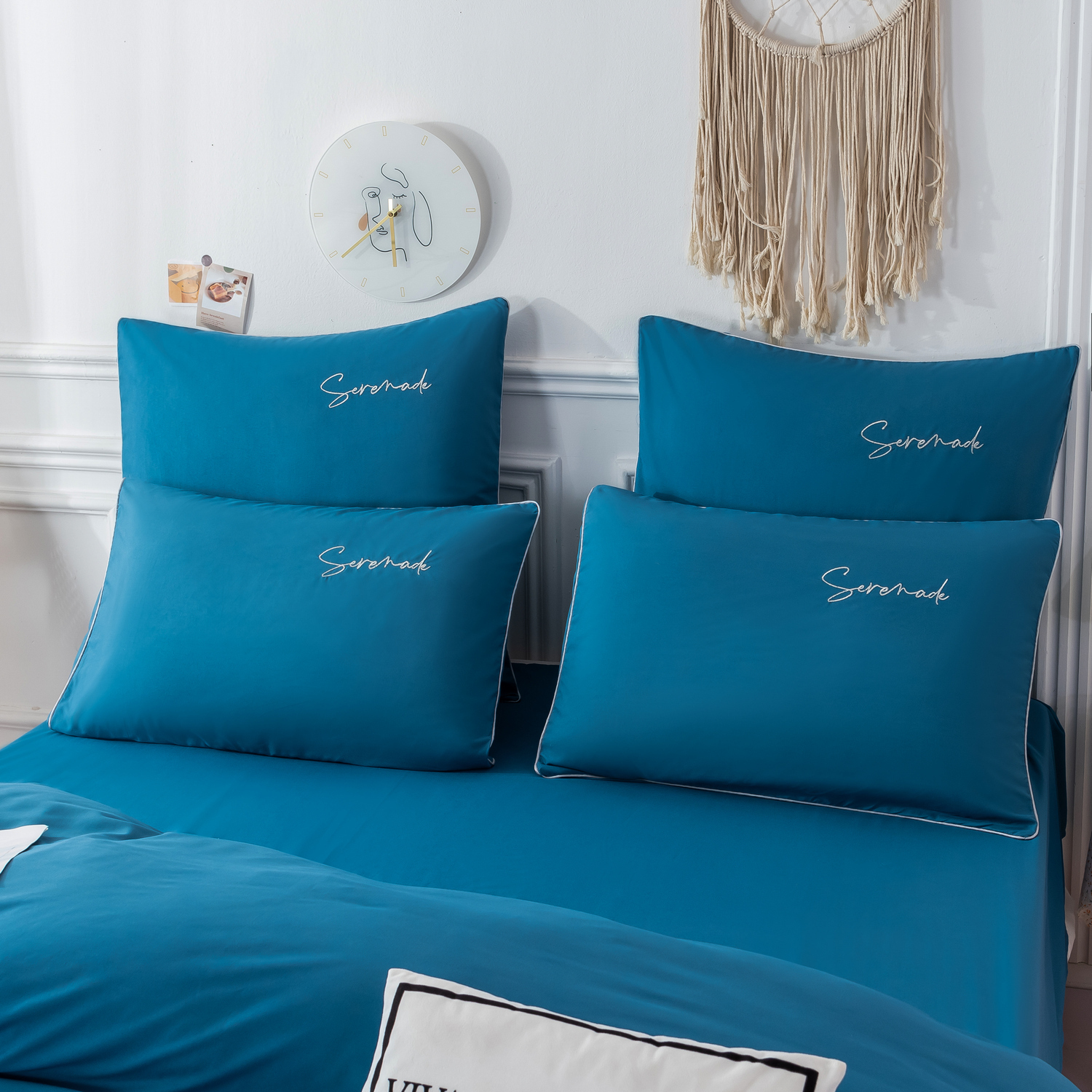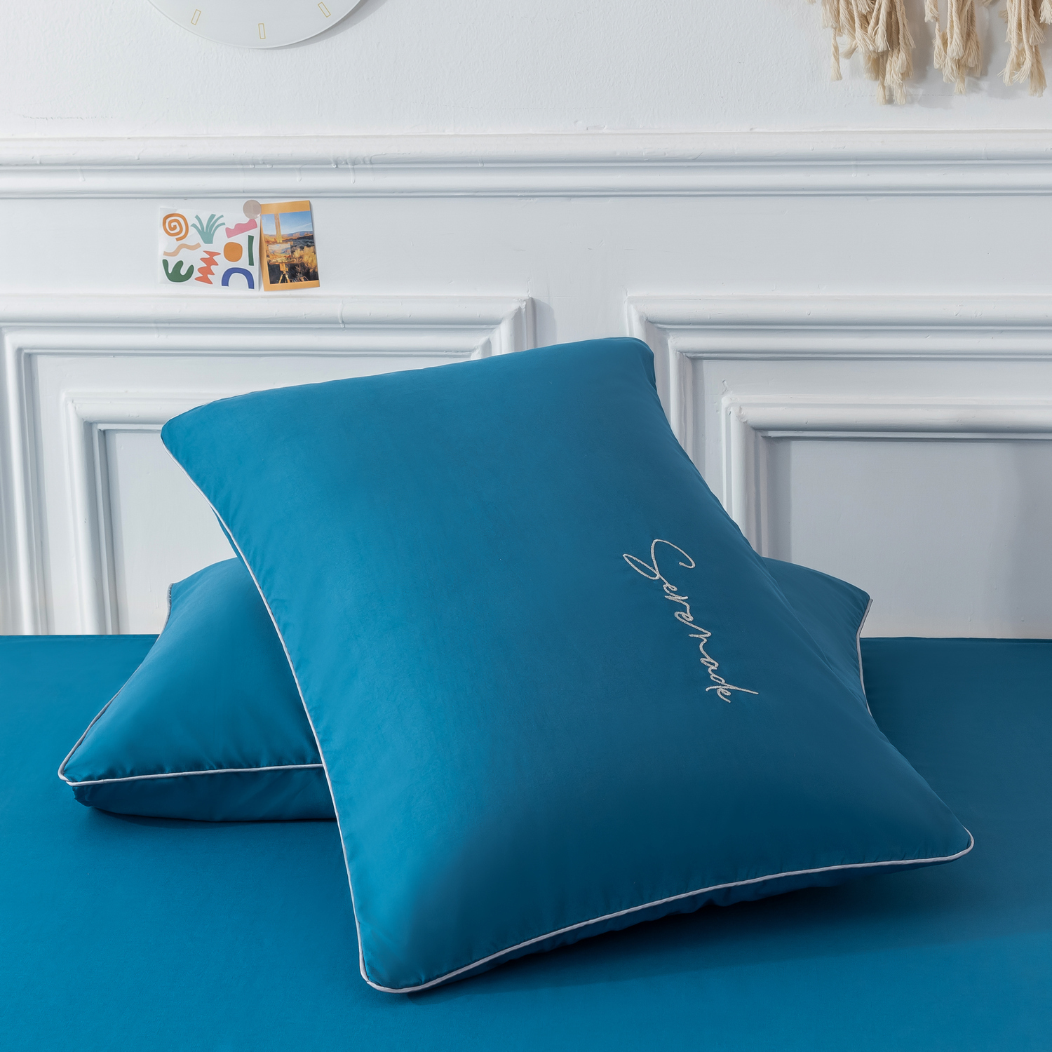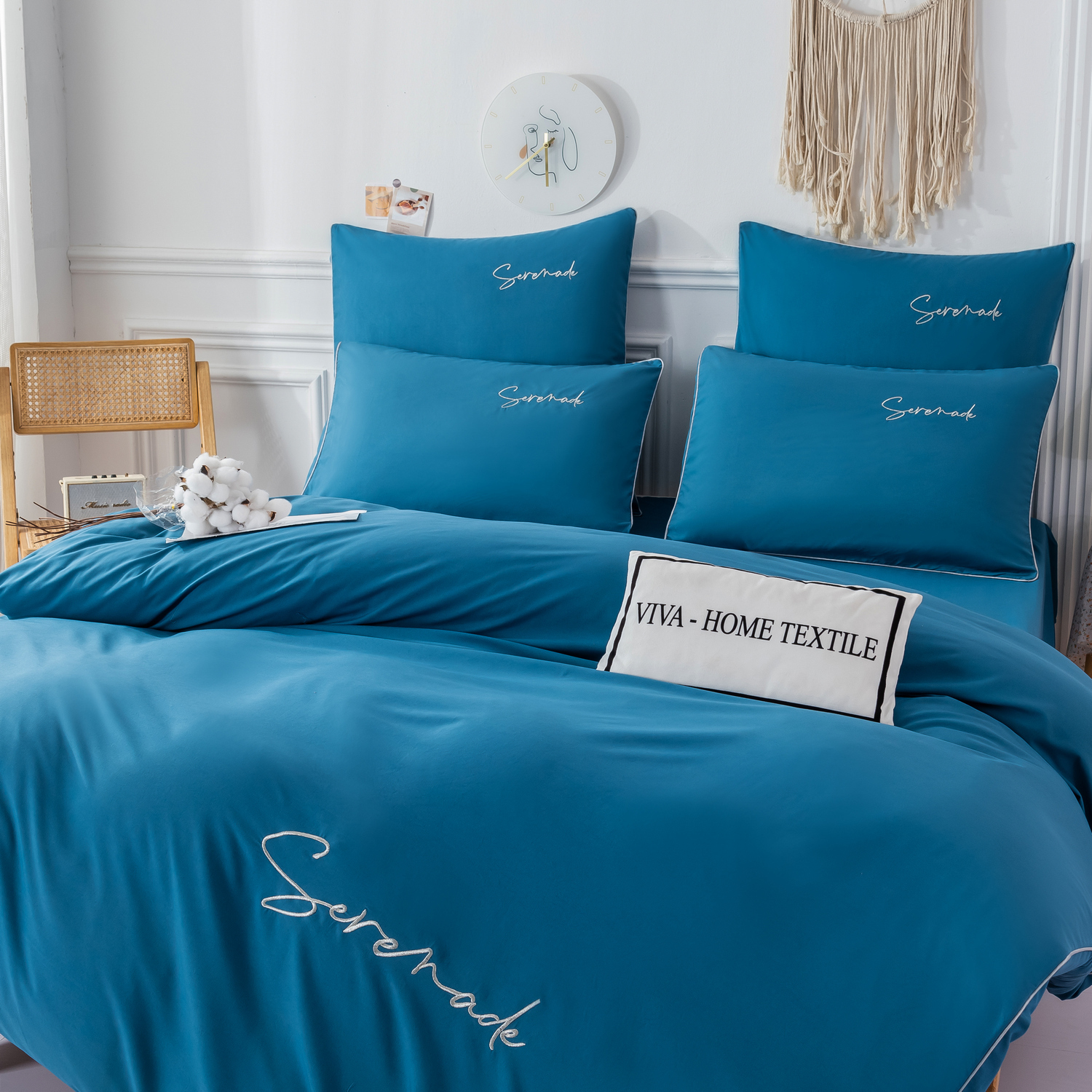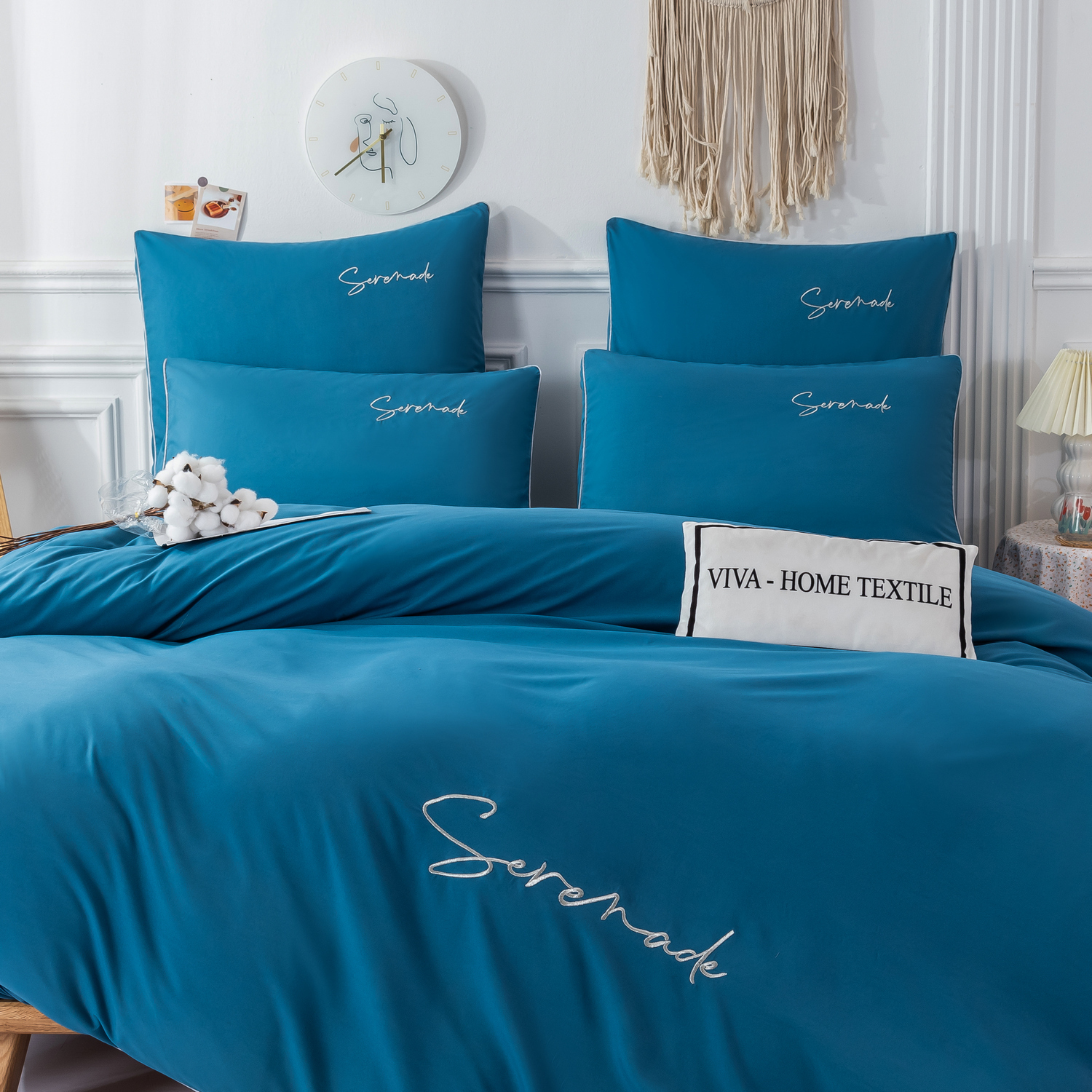 Пододеяльник и наволочки: Украшены вышивкой и кантом по периметру