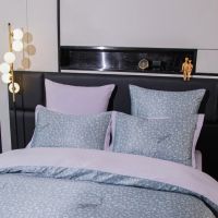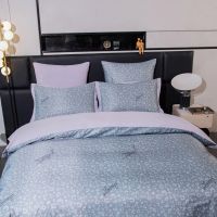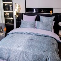 Ткань компаньон: Верх пододеяльника - мерсеризованный сатин, низ пододеяльника - сатин. Наволочки 50*70 см и 70*70 см с разных сторон разной расцветки. Пододеяльник с разных сторон разного цвета. Простыня однотонная такого же цвета, как низ пододеяльника.